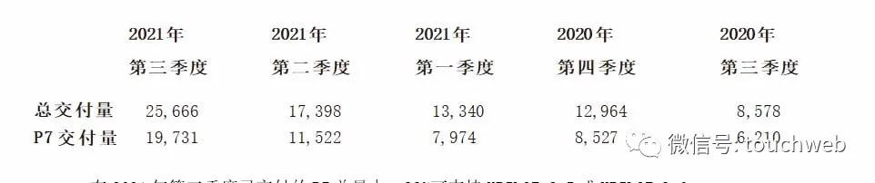 小鹏汽车2021年第三季度P7交付量为19,731辆,为季度新高并较2021年第二季度的11,522辆上升71.2%。