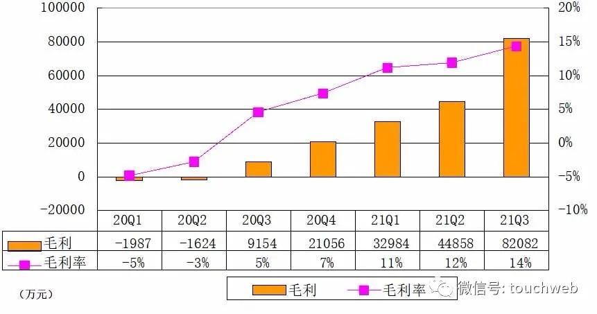 小鹏汽车2021年第三季度毛利为8.2亿元,同比增8倍。小鹏汽车2021年第三季度毛利率达到14%,上年同期的毛利率为5%。