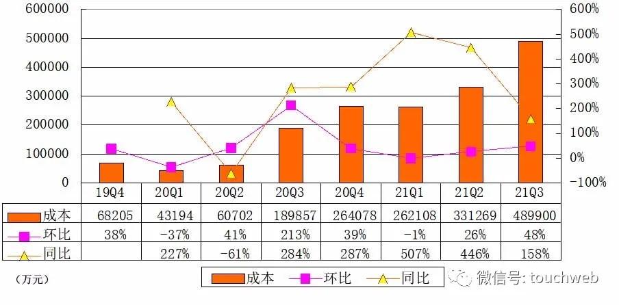 小鹏汽车2021年第三季度成本为49亿元,较上一季度的33.13亿元增长48%,较上年同期的19亿元增长158%。