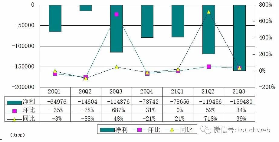 小鹏汽车2021年第三季净亏损为15.95亿元,上年同期的净亏损为11.49亿元。