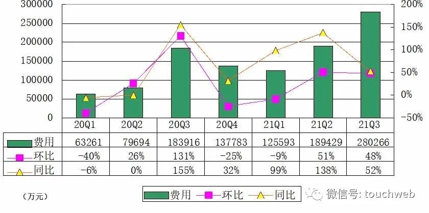 小鹏汽车2021年第三季度费用为28亿元,较上一季度的18.94亿元增长48%,较上年同期的18.39亿元增长52%。